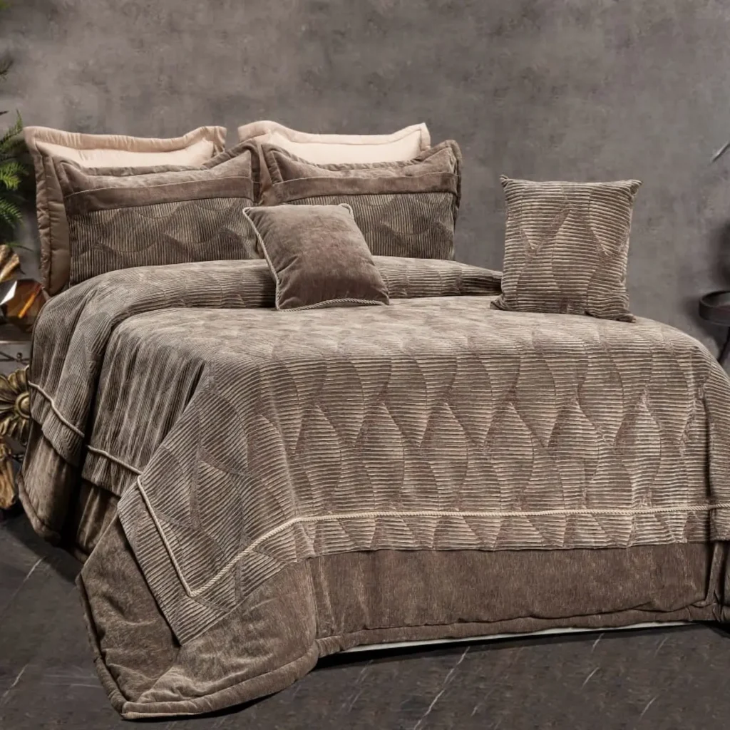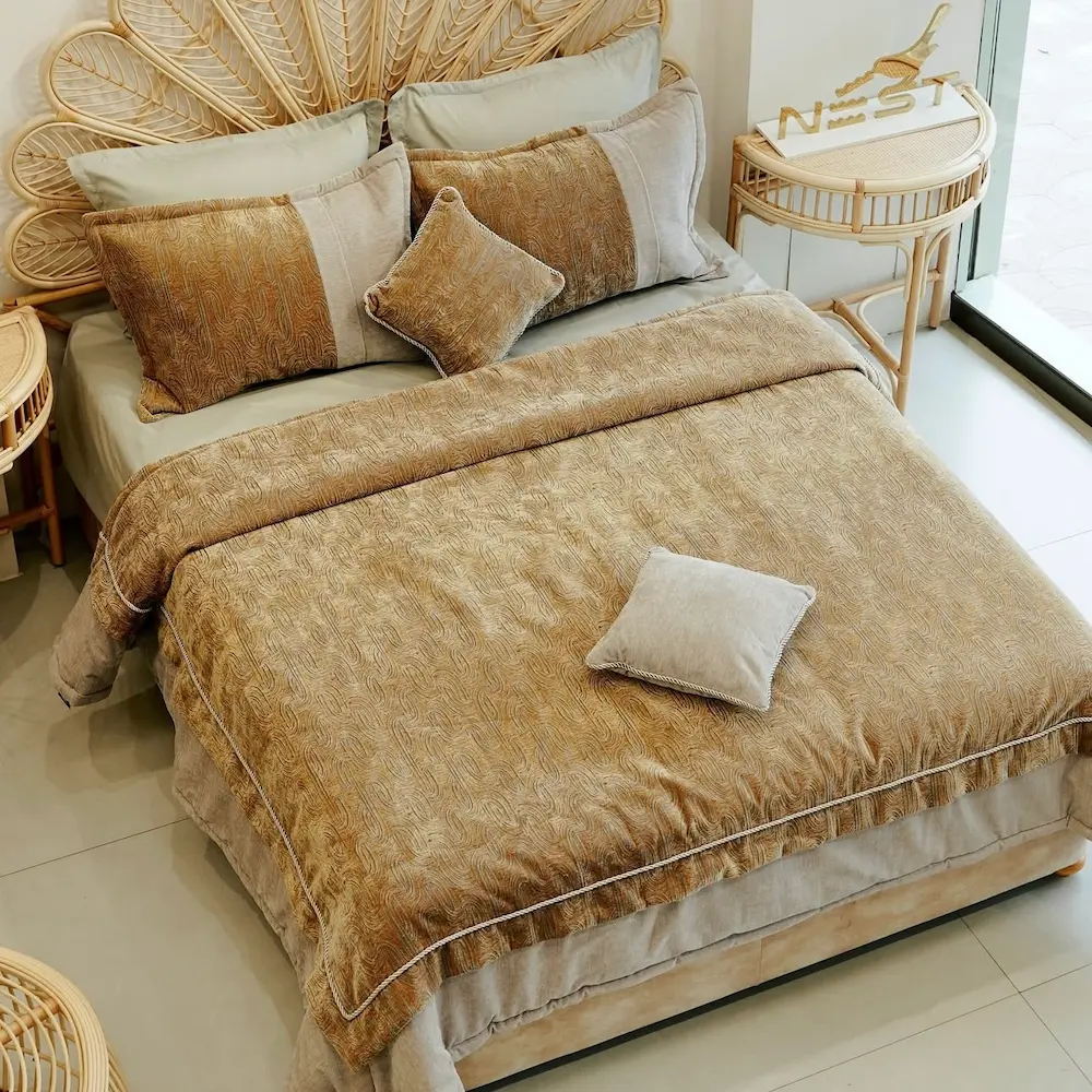 - جنس پارچه: جنس پارچه روتختی باید نرم، لطیف و دارای قابلیت تنفس باشد. پارچههای پنبهای بهترین گزینه برای روتختیها هستند، زیرا تنفسپذیری بالایی دارند و باعث میشوند که در طول شب دمای بدن به خوبی تنظیم شود. همچنین، پارچههای مخمل به دلیل گرمای بیشتری که فراهم میکنند، برای فصول سرد مناسب هستند.