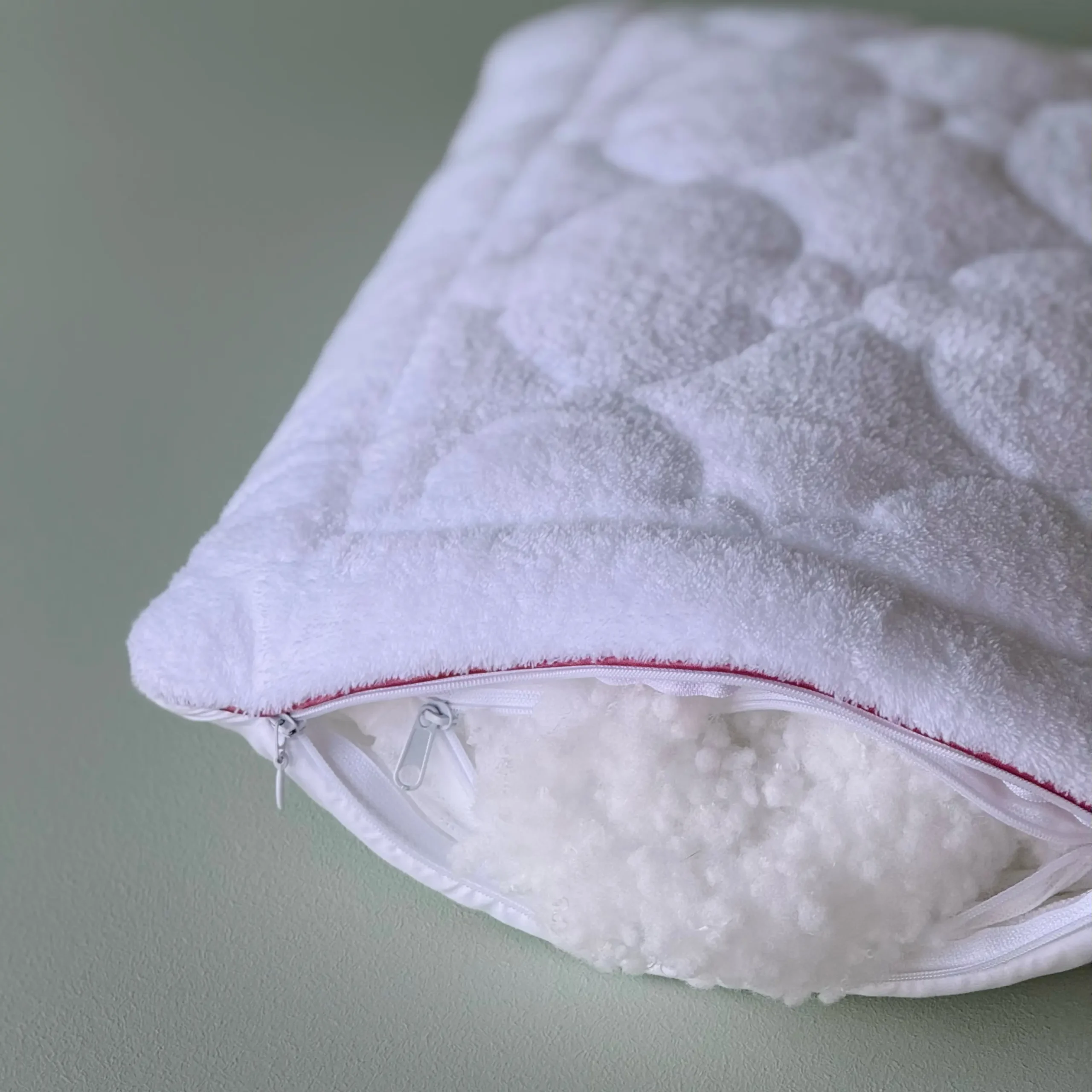 وجود زیپ داخلی این امکان را فراهم می‌کند که میزان الیاف داخل بالش تنظیم شود تا ارتفاع و نرمی آن متناسب با حالت خواب کودک (پشت یا پهلو) تغییر کند. همچنین روکش بالش به‌صورت جداگانه قابل شستشو بوده و به حفظ بهداشت خواب کودک کمک می‌کند.