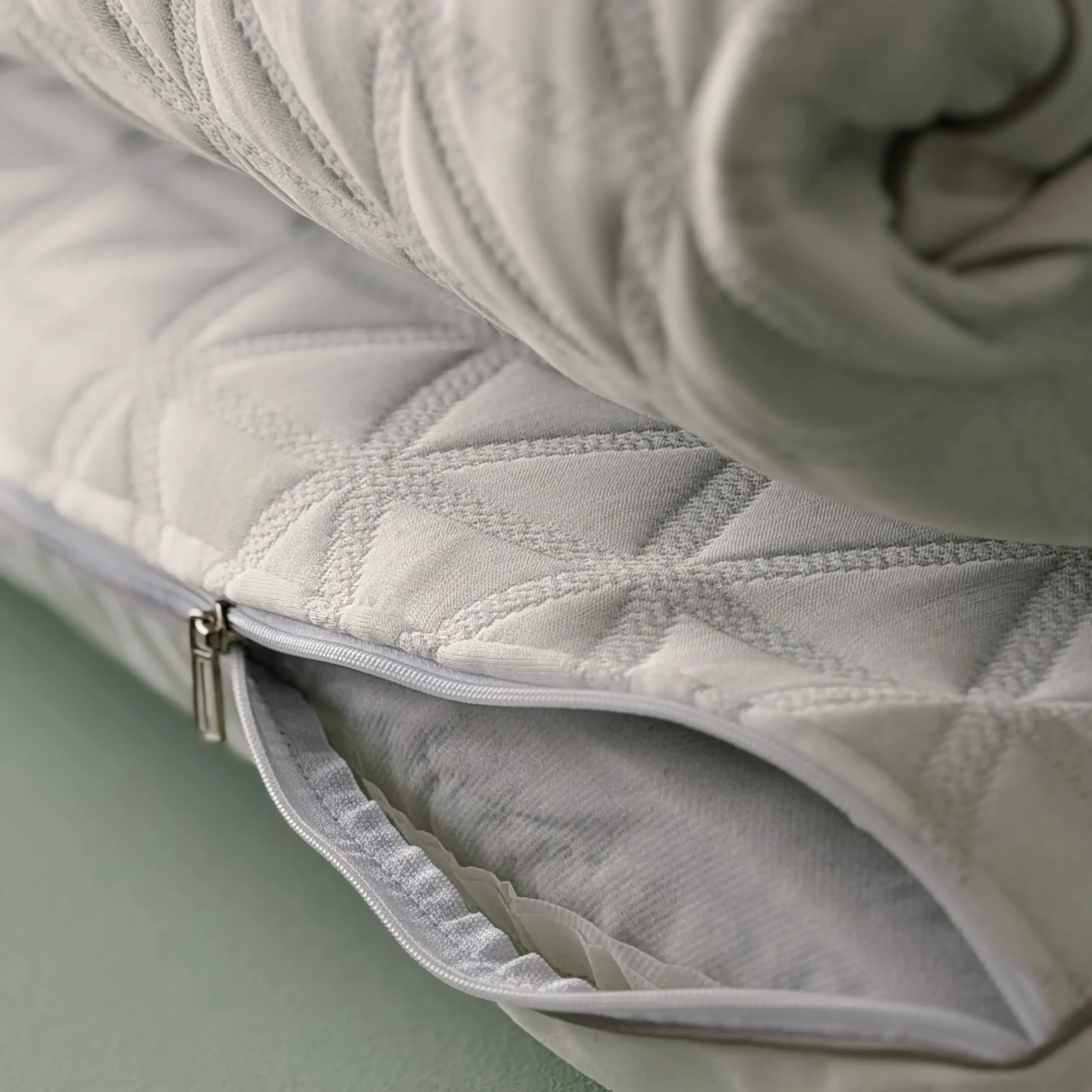 تشک مهمان ازدیلیم دارای رویه ای با طرح قابل شستشو ( زیپی ) می باشد و از پارچه نخ درجه یک با رویه پنبه دوزی سه لایه شده استفاده شده است.
