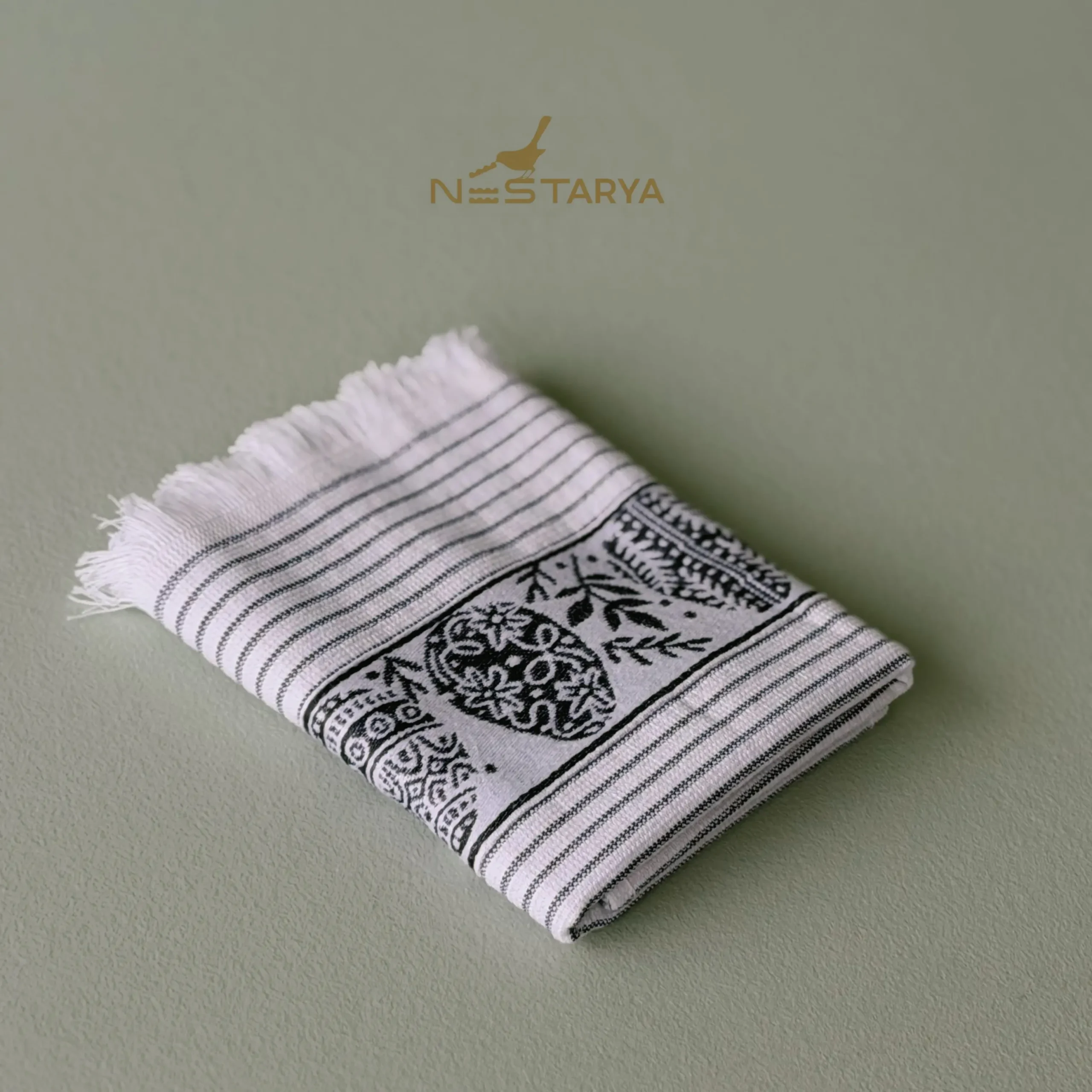 مجموعه حوله شاهسر تولیدشده از 100 درصد پنبه با رویکردی سازگار با محیط زیست و پایدار تهیه شده است.