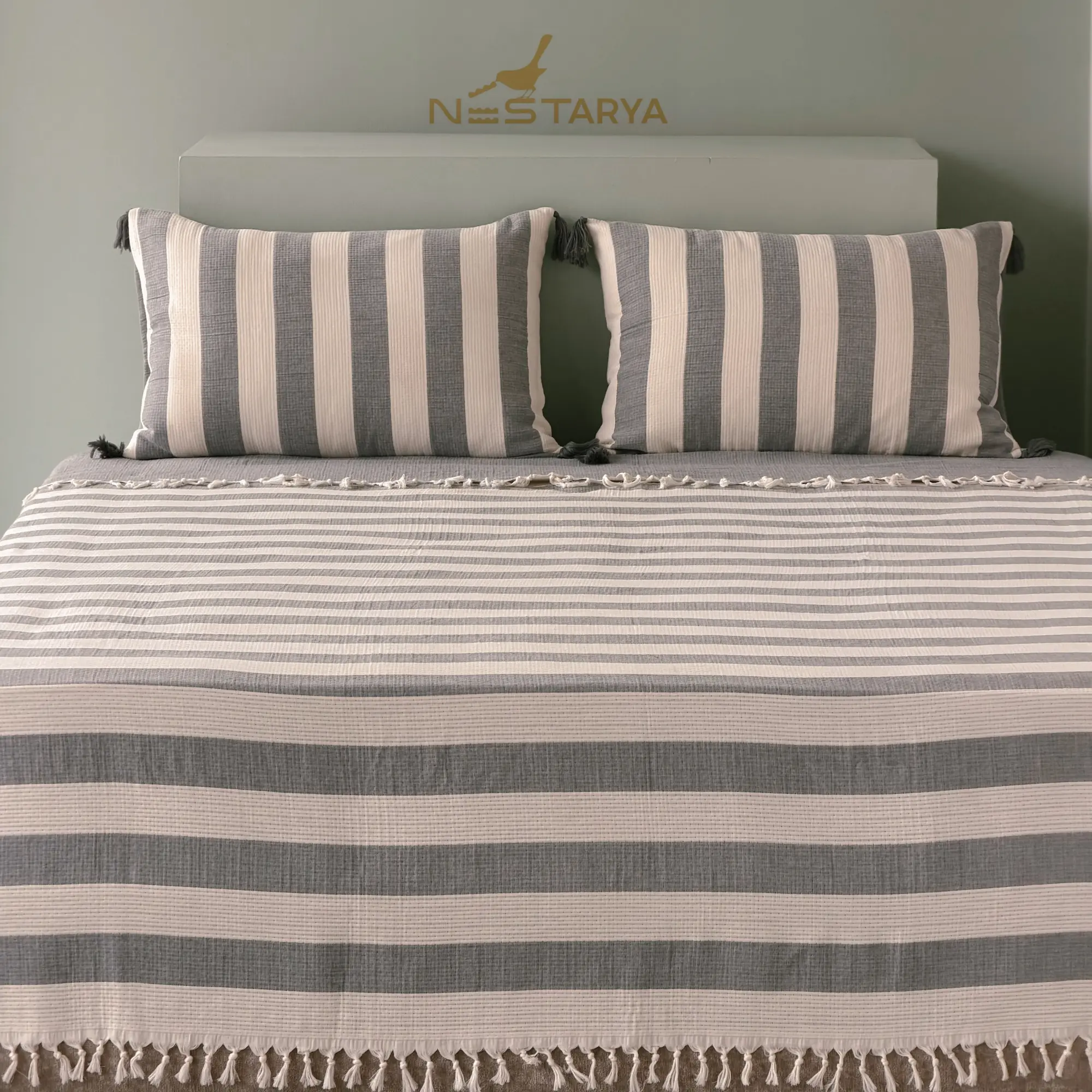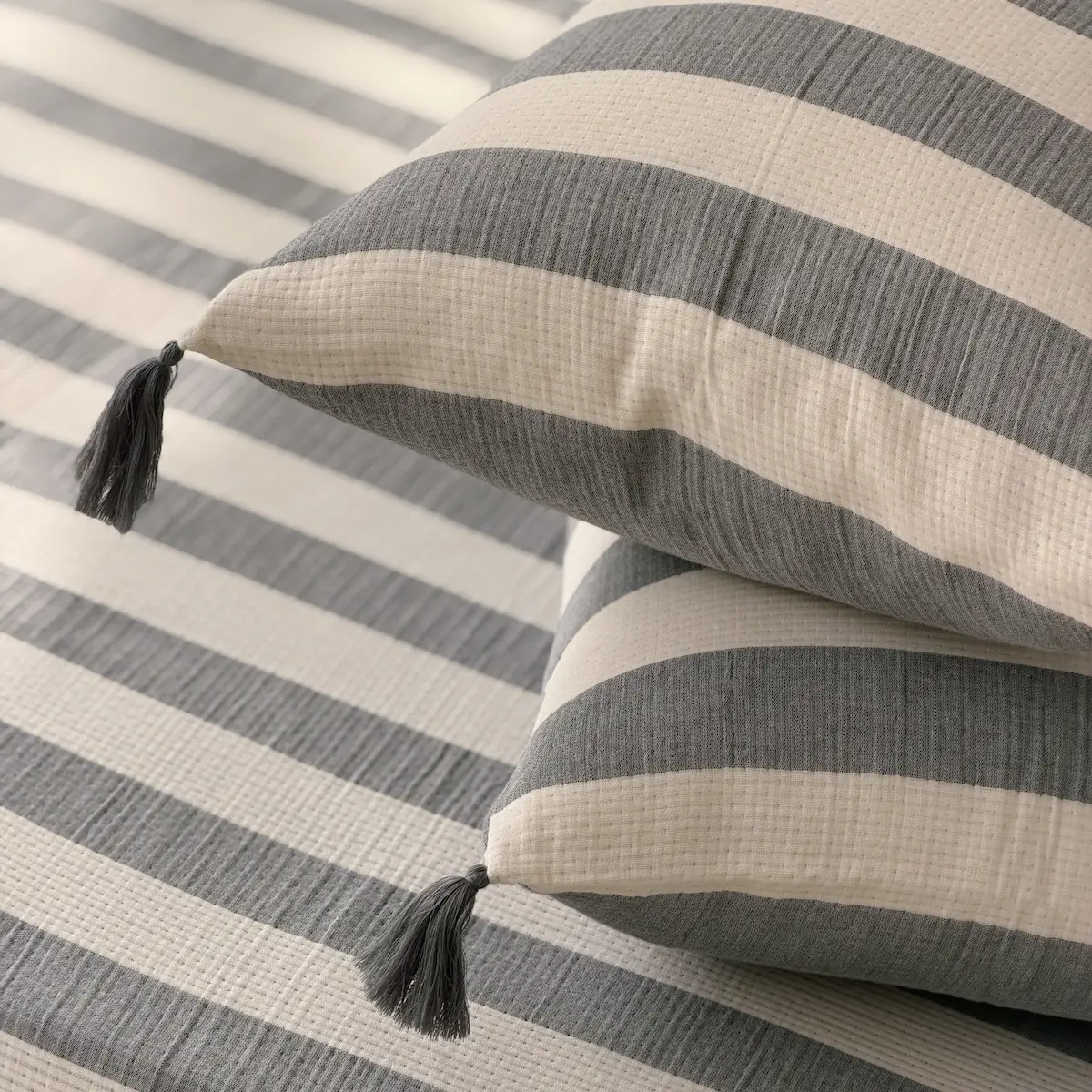 ست روتختی پیکه برند لیندومون (Tac) با طراحی راهراه مدرن و بافت سبک ، انتخابی ایدهآل برای فصلهای گرم و دکورهای مینیمال است.