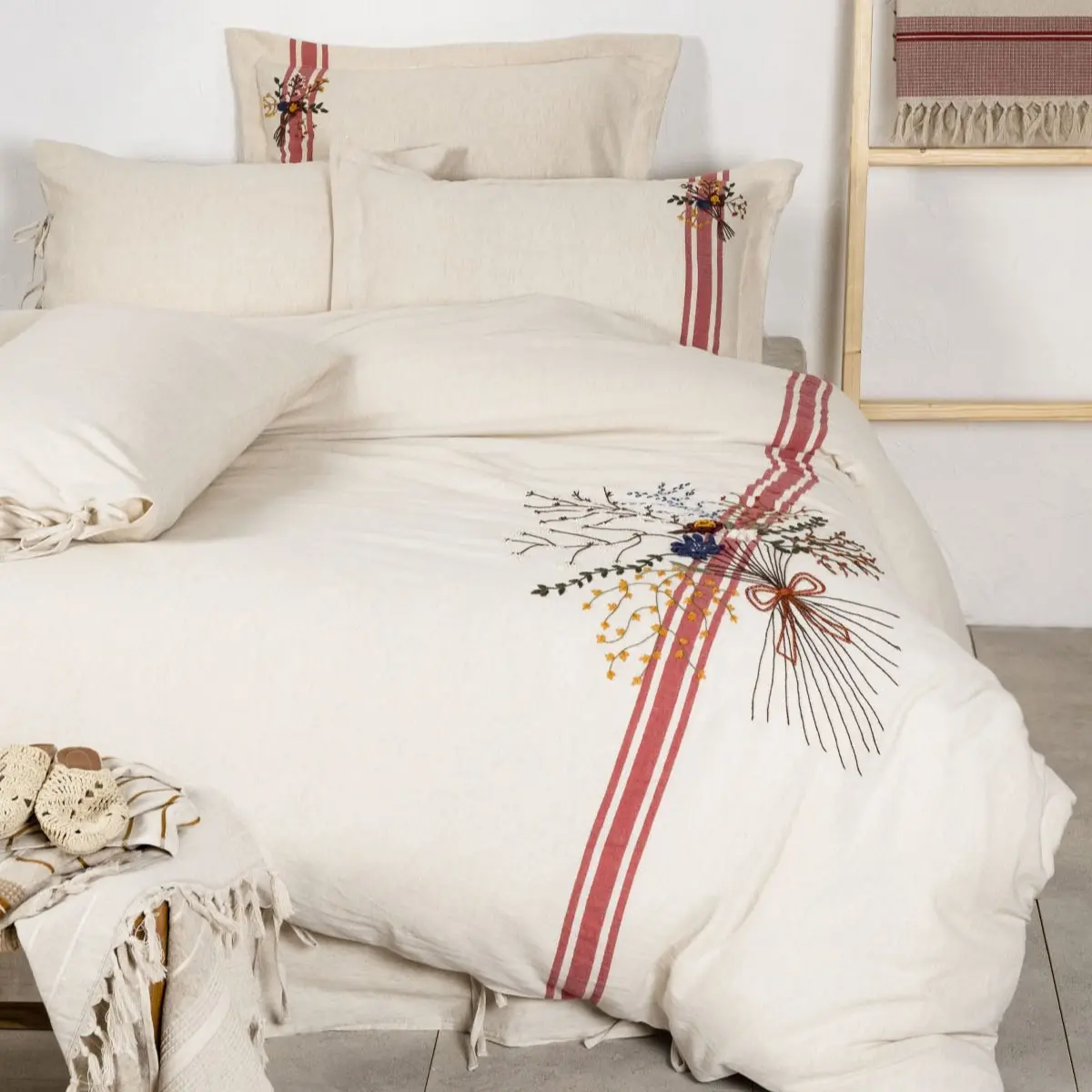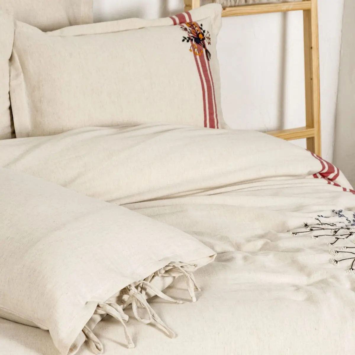 ست کاور لحاف چارلا با گلدوزی که در این سرویس ملحفه استادانه توسط بهترین خیاط های کشور ترکیه با هنر دست مزین شده انتخابی بسیار ایده آل خواهد بود و به لطف استفاده از پارچه با بافت بسیار متراکم و با دوام تولید شده از پنبه ارگانیک،مناسب برای تنفس پوست شماست
