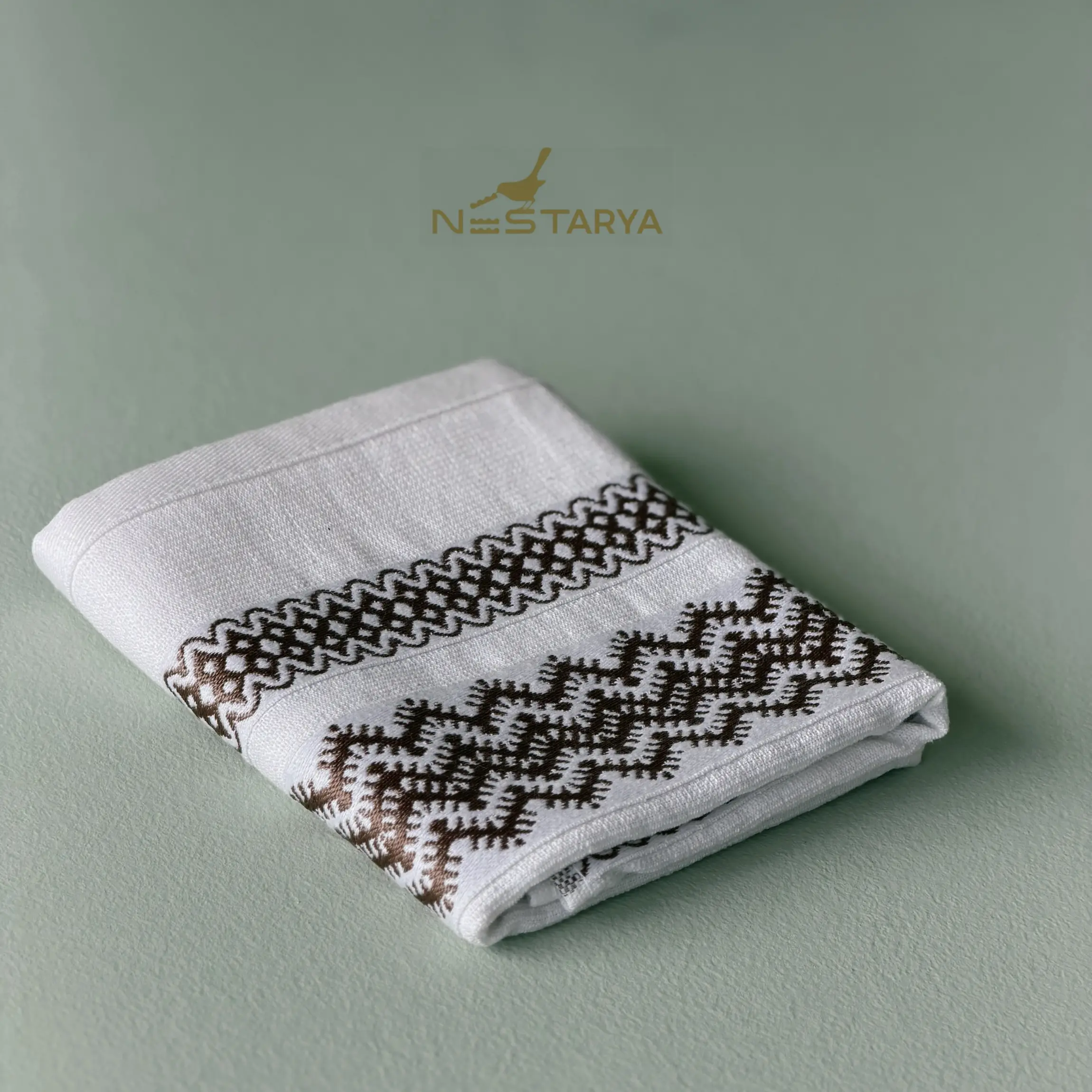 مجموعه حوله شاهسر تولیدشده از 100 درصد پنبه با رویکردی سازگار با محیط زیست و پایدار تهیه شده است.