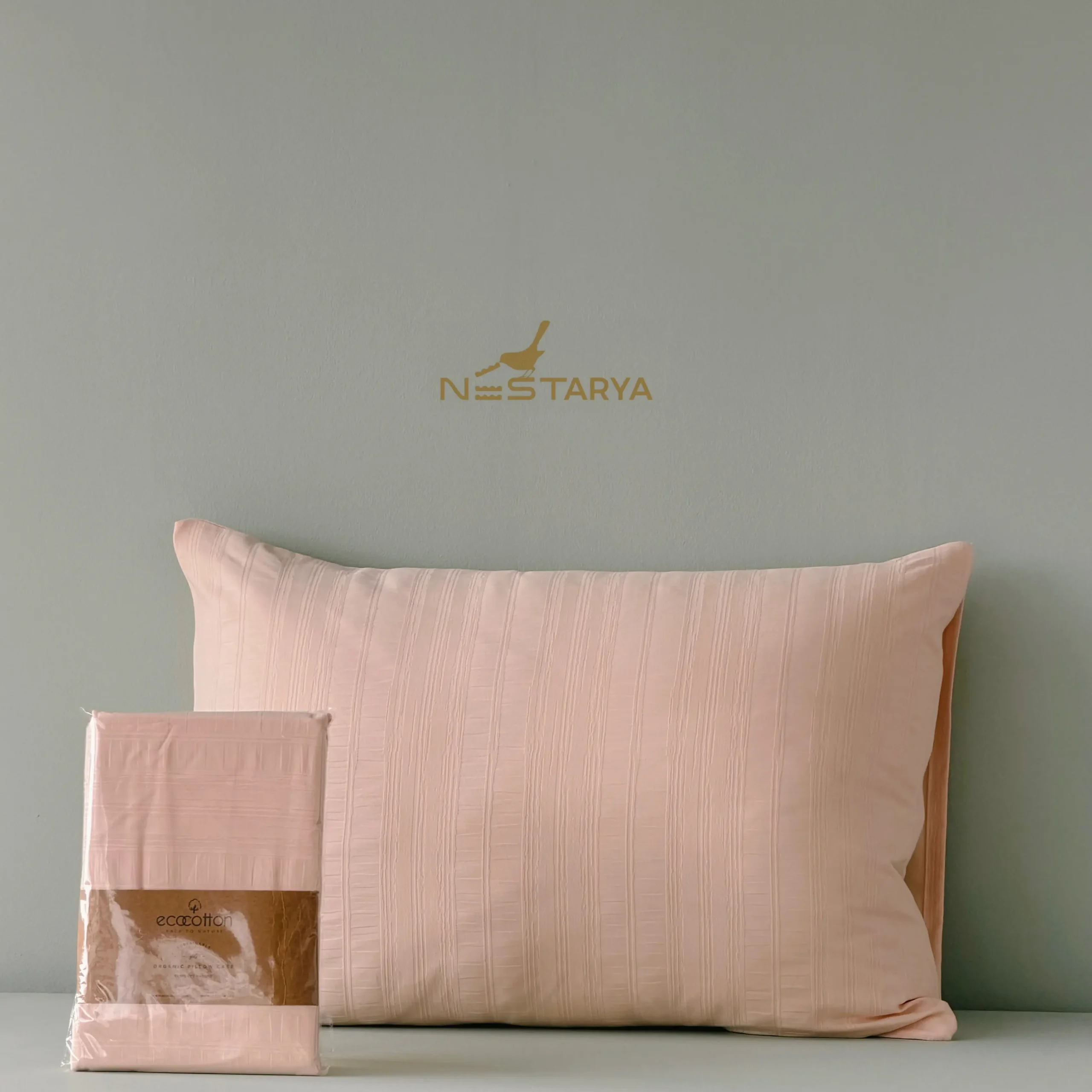 روبالشی ecocotton با طراحی ساده و بافت رگه دار طبیعی ، انتخابی آرام و مینیمال برای اتاق خواب است .
